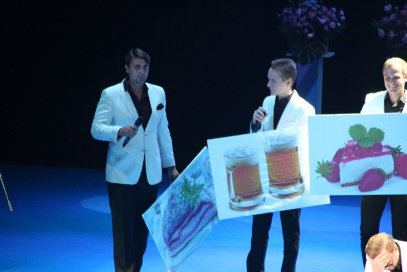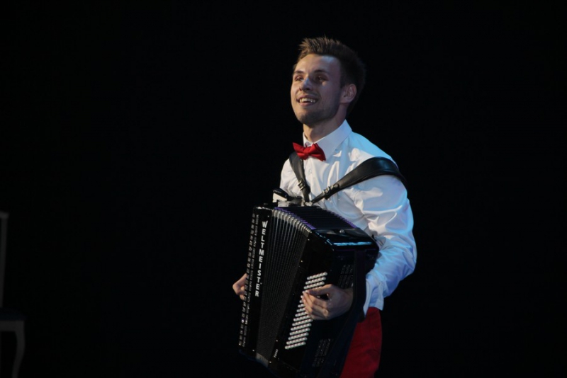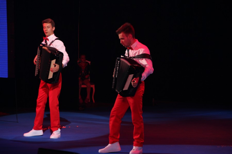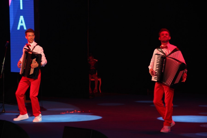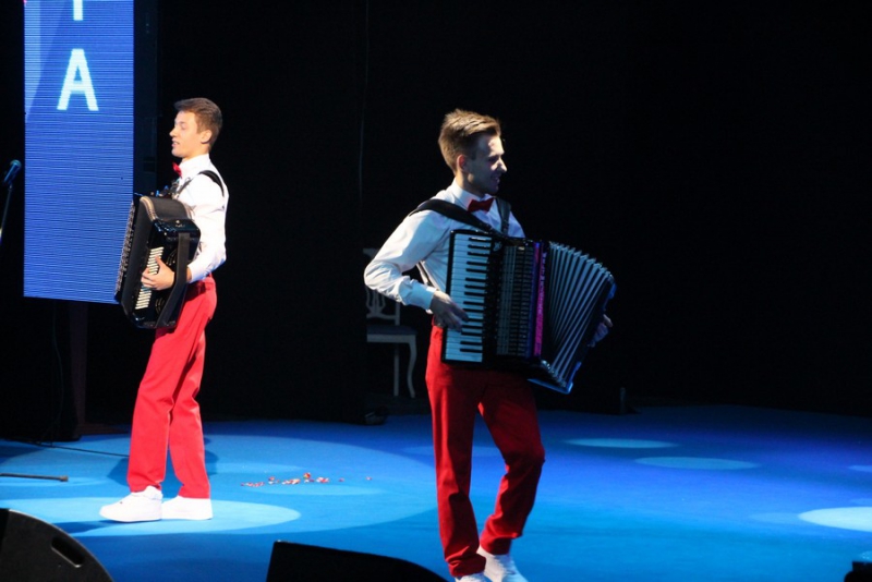 «Пусть ваши детки растут здоровыми, а у вас пусть будет побольше денег!» - пожелали педагогам артисты, чем вызвали бурные аплодисменты. После этого на сцену вышел дуэт аккордеонистов из консерватории.