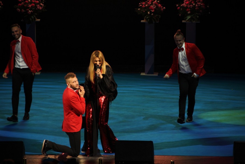 Певица находилась в хорошем расположении духа и всячески пыталась расшевелить аудиторию. Во время выступления артистка спустилась к ВИП-зрителям и попросила их спеть вместе с ней и станцевать. Составить певице кампанию отважился лишь областной парламентарий Дмитрий Пьяных, который слегка подпел. Агурбаш отметила, что многие мужчины в зале чересчур грустные и хмурые, ей в ответ выкрикнули, что они просто серьезные.