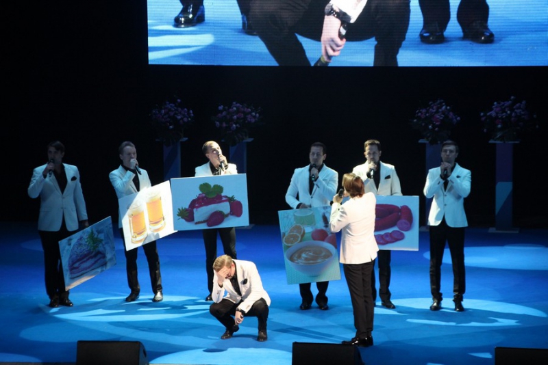 Хор под руководством выпускника саратовской консерватории Евгения Спирина исполнил несколько композицией. Одной из самых известных оказалась песня «Короли ночной Вероны». Им громко подпевали педагоги. Кроме этого артисты исполнили свою новую песню «Диета и ЗОЖ», инсценировав на сцене борьбу с перееданием. Однако в конце представления, про диету и ЗОЖ певцы забыли, расцеловав плакаты с мясом, сыром и пирожками.