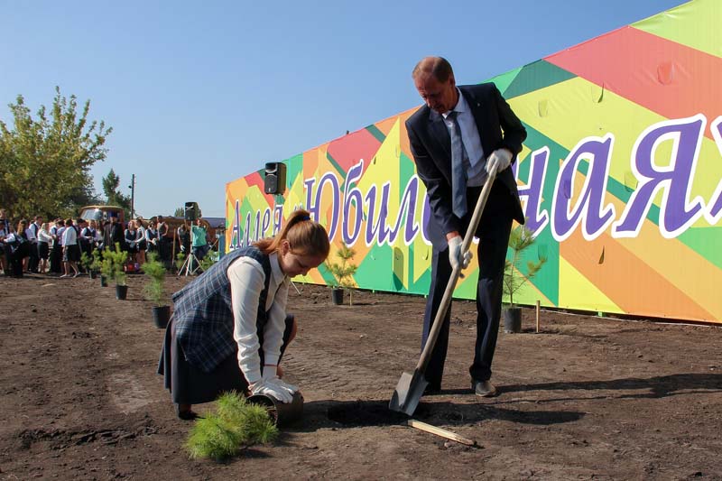 До этого дня готовили будущую аллею взрослые: на участке улицы Лапшова рядом со Школьной между дорогой и жилым сектором спланировали территорию, очистили трубы ливневой канализации и обустроили откосы обочины проезжей части улицы, создавая на ней уклоны для схода паводковых вод, завезли плодородный грунт. Красивым завершением этой новой «зелёной» части районного центра стал яркий информационный баннер.