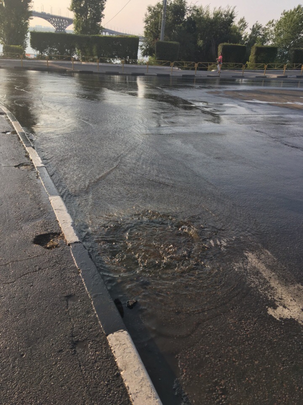 Вода из колодца на «зебре» затапливает Набережную Космонавтов