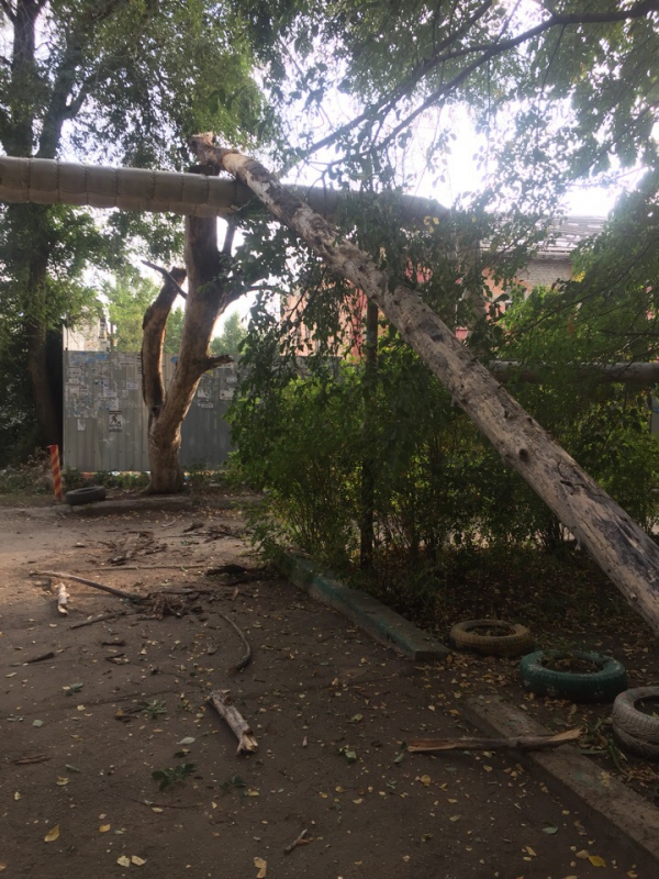 По его словам, стоявшее во дворе дома №4 по улице Осипова насаждение было сухое. Причина, по которой оно упало, не известна. При падении дерево приземлилось на коммуникации теплосетей и разломилось на две части. При этом массивные элементы ствола нависли над дорогой.