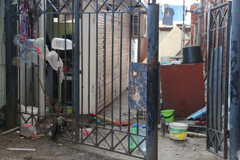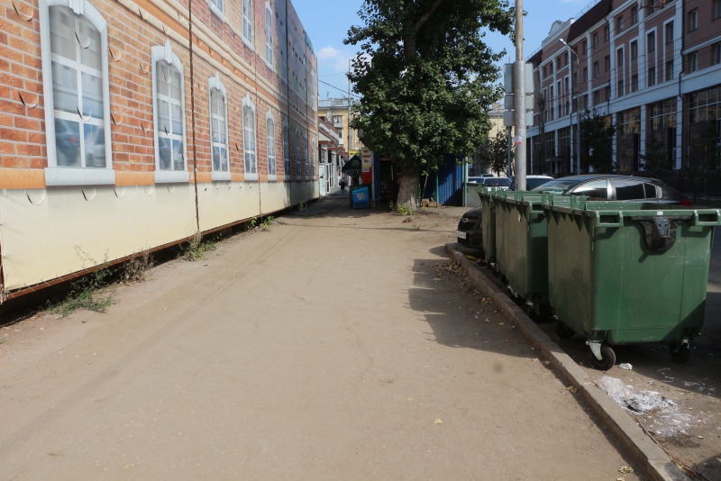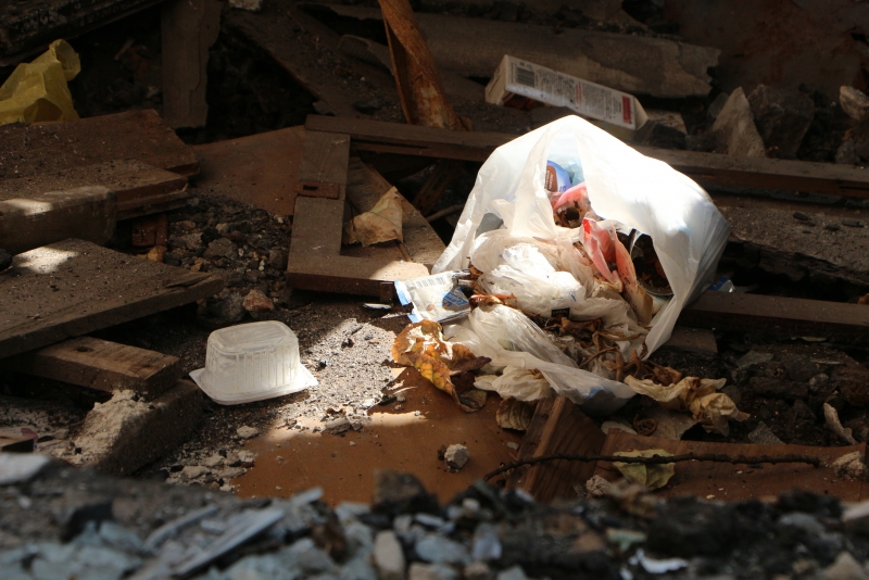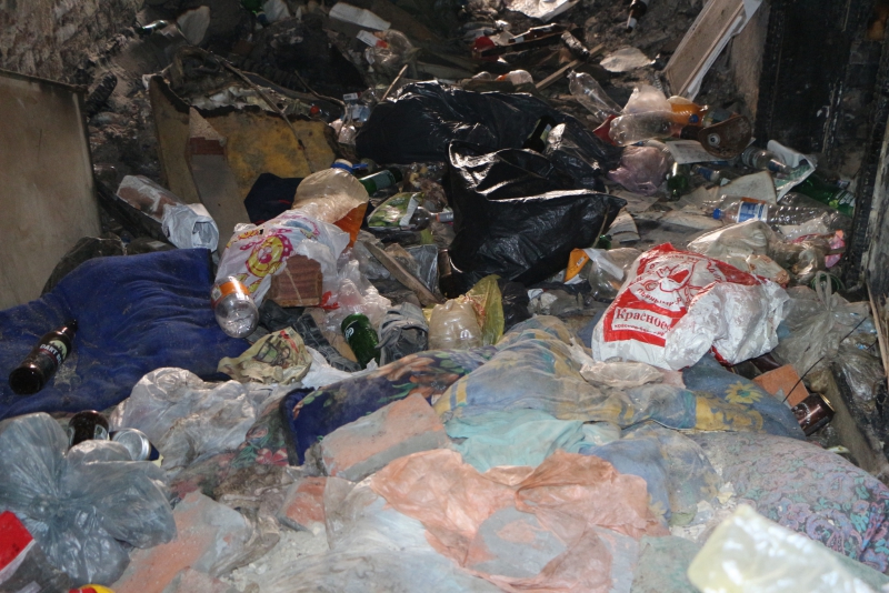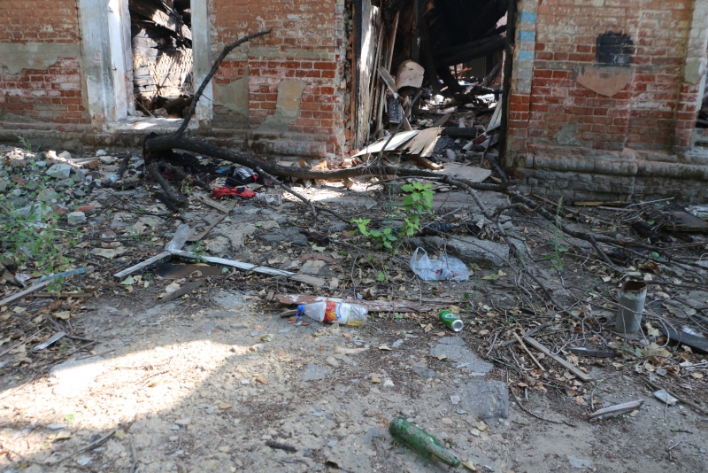 Взрослые обитатели соседних домов и, предположительно, работники рынка «Привокзальный» облюбовали руины в качестве свалки и выбрасывают туда мусор. В нескольких местах скопились приличные запасы отходов. Такое поведение не может не удивлять, так как на улице в 10 метрах от входа во дворы стоят четыре мусорных контейнера.