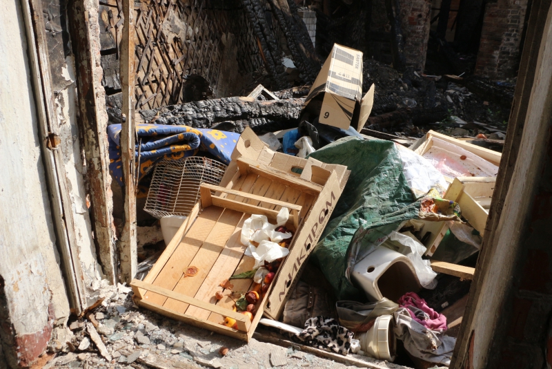 Не огороженные руины сгоревшего дома на Аткарской превратили в помойку