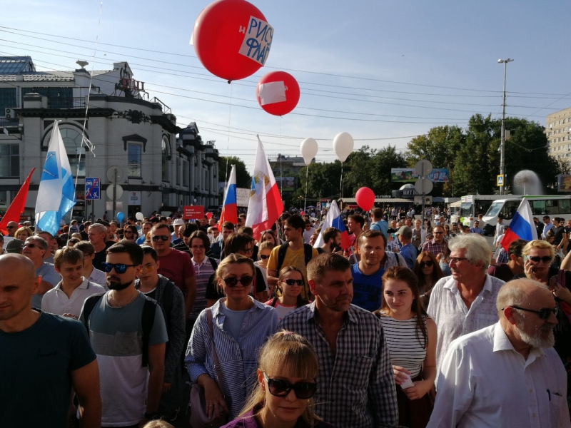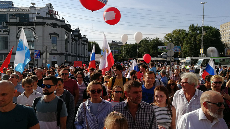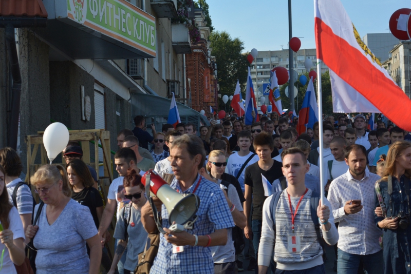У цирка к началу протестной акции собрало около 200 человек, большинство из них пришли с флагами РФ, у некоторых были нарисованные от руки плакаты с требованиями не повышать пенсионный возраст. Позже протестующие решили провести шествие и двинулись к набережной, выкрикивая антиправительственные лозунги или «Мы здесь власть» и «Россия без пенсионной реформы». За этим наблюдали многочисленные сотрудники полиции, но вмешиваться не стали.