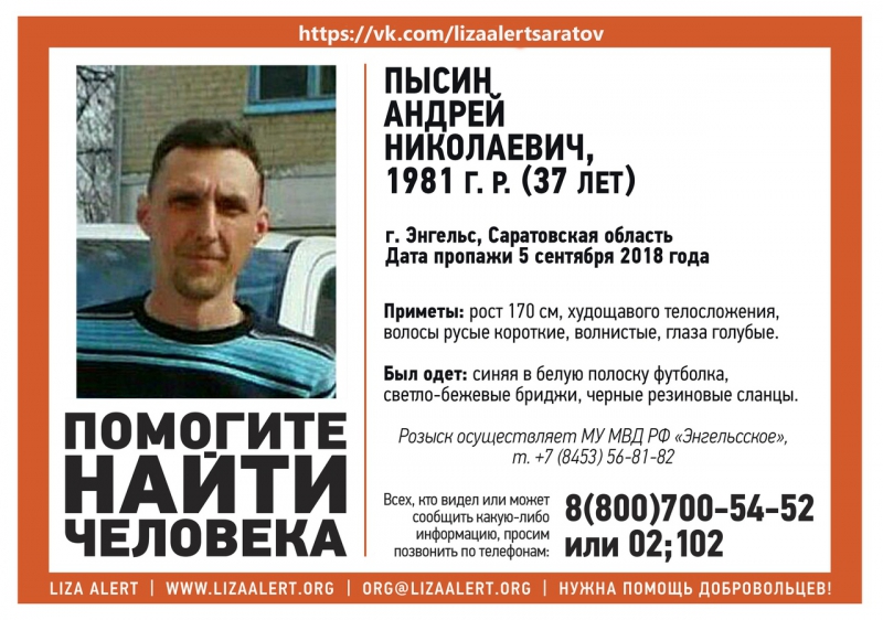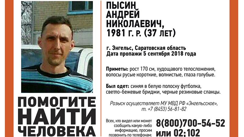 Волонтеры и полиция ищут пропавшего в Энгельсе Андрея Пысина