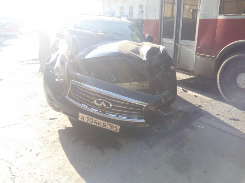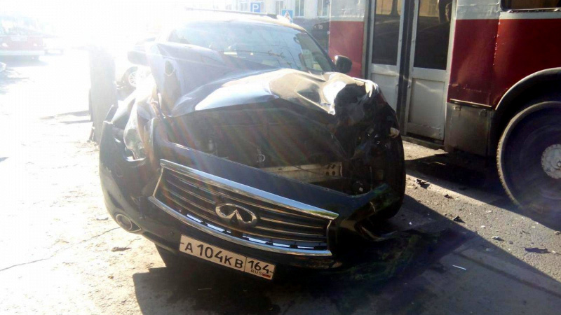 По предварительным данным, около 8.30 на пересечении улиц Московской и Некрасова водитель автомобиля «Инфинити» не пропустил автобус, следующий по маршруту Энгельс-Саратов.