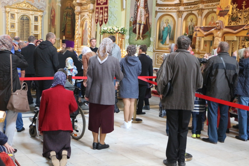 По словам корреспондента «Четвертой Власти», длинная очередь к храму протянулась на целый квартал, такая же ситуация наблюдалась и сегодня утром, и вчера во время сильного ливня. По оценке саратовской епархии, вчера святыню в Саратове встречали порядка 3 тысяч горожан. Ночью в Покровском храме состоялась Литургия. Как рассказали горожане, они готовы стоять в очереди часами, лишь бы увидеть мощи и приложиться к ним.