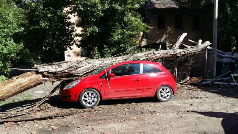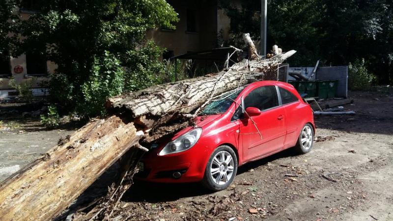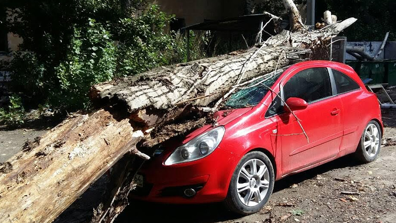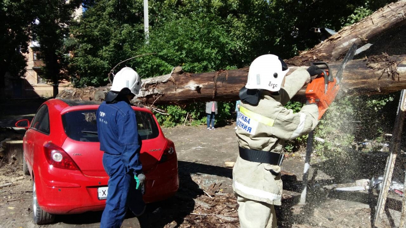 По предварительным сведениям, крупное дерево упало возле дома №46 по улице Шехурдина (пересечение с Бульварной). Ствол рухнул вдоль иномарки, раздавив крышу, лобовое стекло и капот.