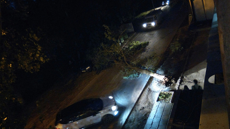 На Международной дерево упало на автомобиль и перегородило дорогу