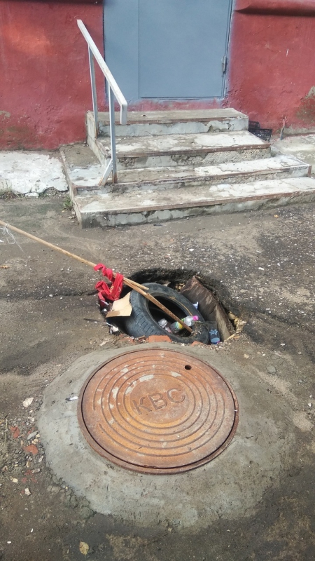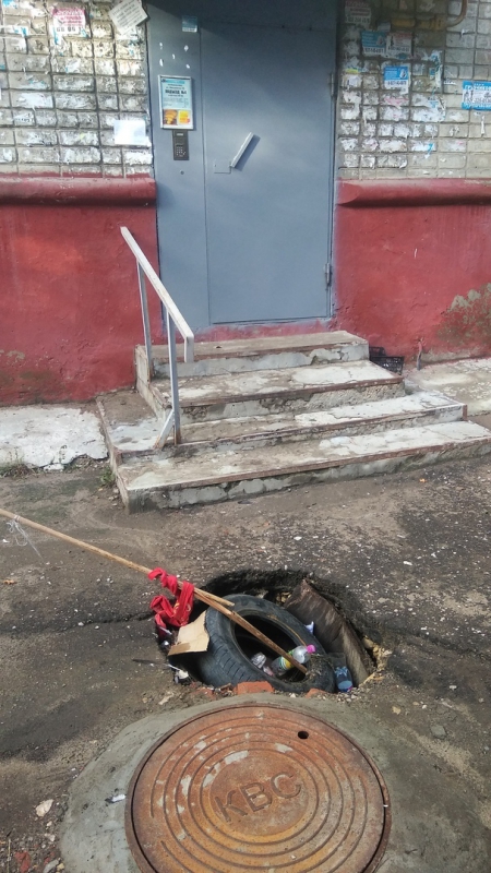 На Шехурдина во дворе жилого дома расползается яма рядом с люком