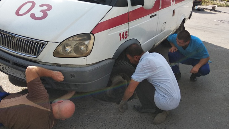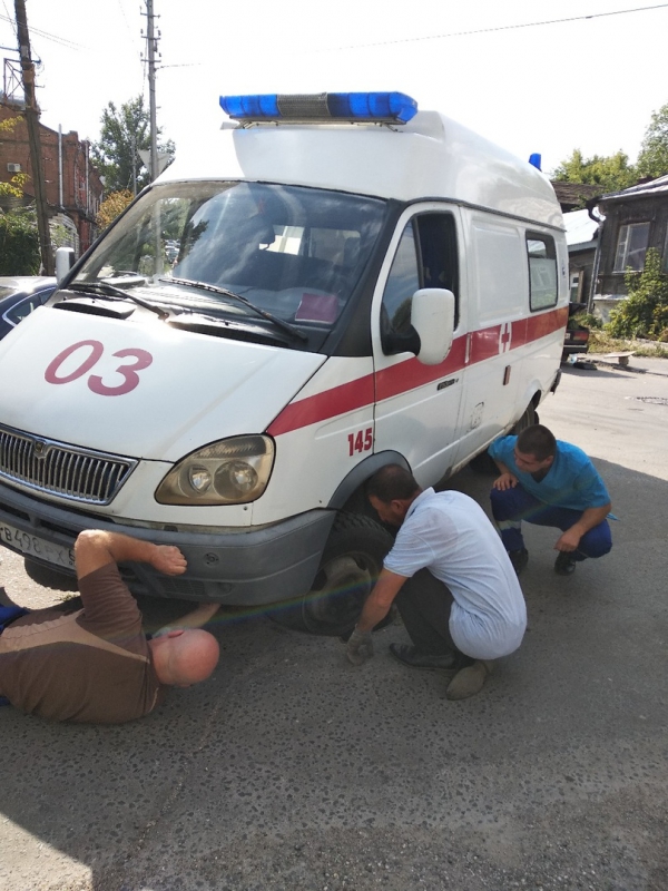 Судя по опубликованным фотографиям, автомобиль экстренной службы левым колесом попал в яму, которая расположена посередине проезжей части. После того как машину вытащили, опасное место обозначили колесом.