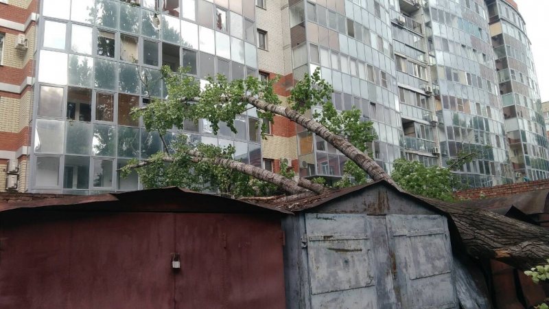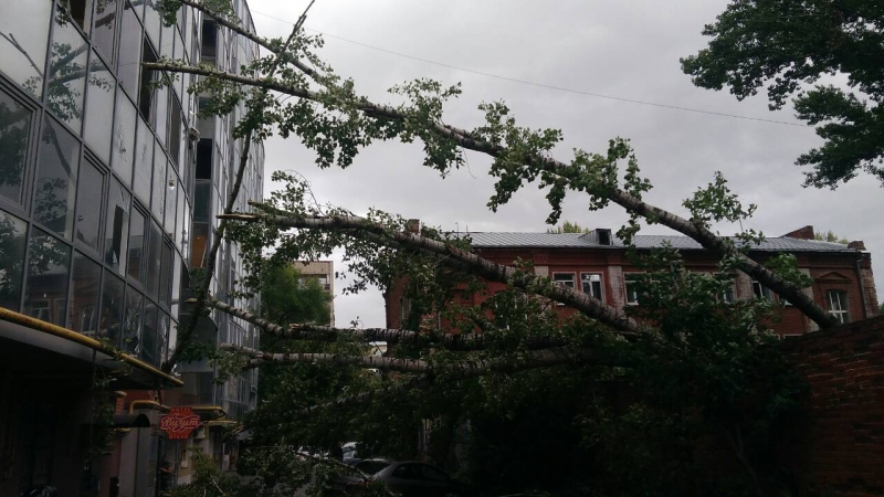 В центре Саратова упавшее дерево разбило стекла на 4-х этажах и автомобиль