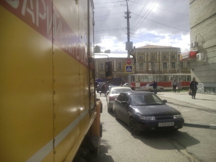 По их данным, движение остановилось в 12.50. Вагон 3-го маршрута, поворачивающий с Советской в Мирный переулок, встал в обесточенной зоне пересечении трамвайных и троллейбусных проводов.