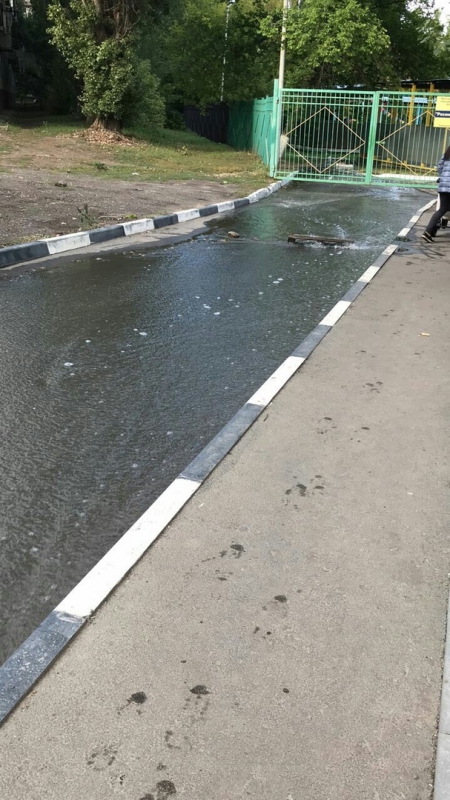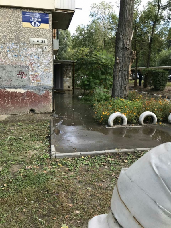 Как видно на снимках, вода растеклась по всей ширине проезжей части, в том числе за ограждением детсада. Таким образом, проход к дошкольному учреждению оказался подтоплен. Кроме того, потоки дошли и до расположенного по соседству дома на Тархова. Огромная лужа достигла подъездов, поэтому выйти, не промочив ноги, там не представляется возможным.