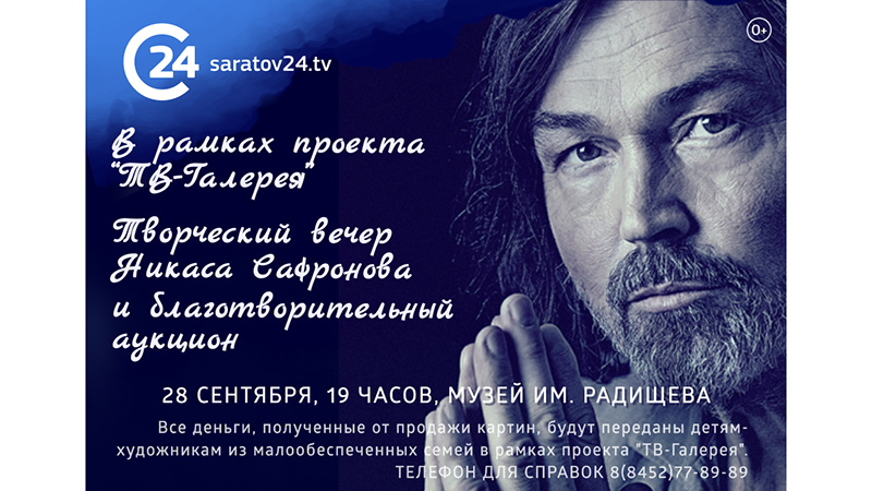 Напомним, творческий вечер Никаса Сафронова и благотворительный аукцион пройдут 28 сентября в 19:00 в музее имени Радищева. Телефоны для справок: 8 (965) 881-32-23 и 77-89-89.