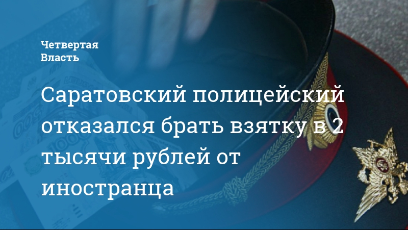 Саратовский полицейский отказался брать взятку в 2 тысячи рублей от иностранца