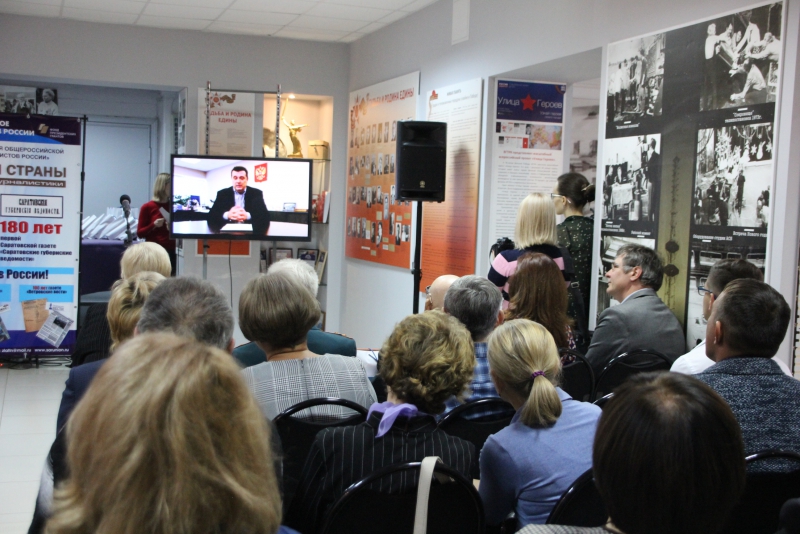 Поздравил саратовских коллег и председатель Союза журналистов России Владимир Соловьев по видеосвязи, поскольку сам сейчас находится в Мурманске.