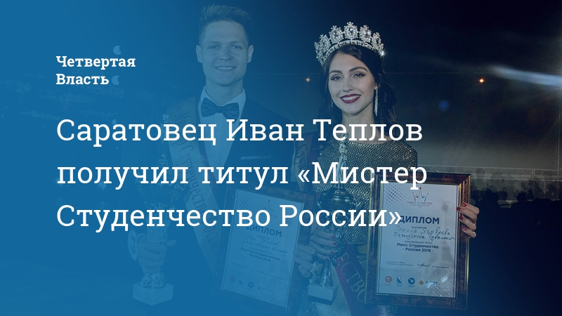 Титул Мистера Студенчество России – 2018 достался саратовцу Ивану Теплову, студенту Поволжского института управления РАНХиГС. Такой результат он показал в финале всероссийского конкурса интеллекта, творчества и спорта, который проходил в выходные в Севастополе.