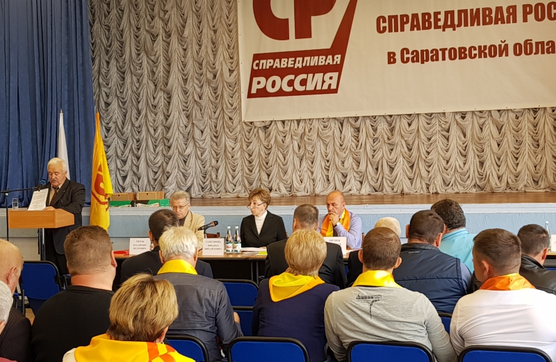 29 сентября 2018 года в Саратове состоялась Конференция регионального отделения политической партии Справедливая Россия в Саратовской области. В мероприятии приняли участие делегаты Конференции, избранные решениями прошедших накануне конференций местных отделений партии, а также приглашенные лица, среди которых депутаты местных органов самоуправления, активисты местных отделений, сотрудники аппарата регионального отделения.