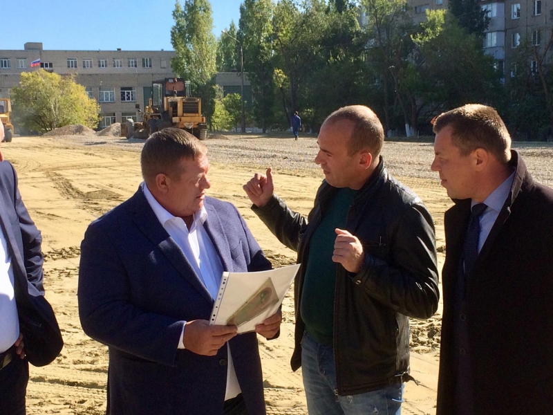 Депутат Государственной думы Николай Панков осмотрел площадку строящегося спорткомплекса открытого типа у гимназии №5 в Комсомольском поселке Саратова.