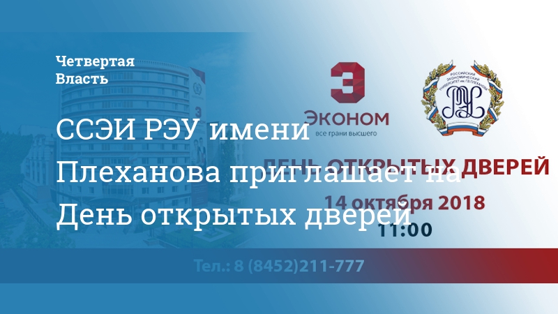 14 октября 2018 года в 11.00 в Саратовском социально-экономическом институте РЭУ им. Г.В. Плеханова состоится День открытых дверей.