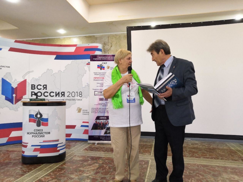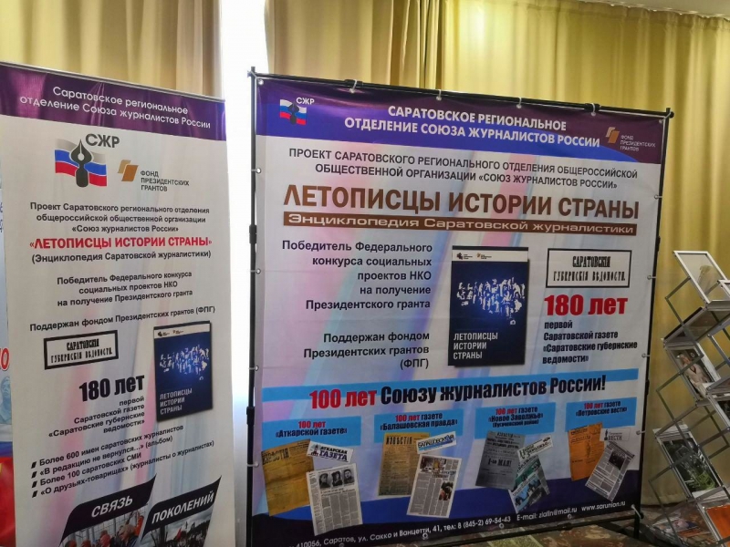 Сегодня прошла презентация книги о журналистах «Летописцы истории страны». Это издание, которое включает 630 имен журналистов, работавших в Саратовской области за 100 лет, а также сведения о редакциях областных и районных газет. Презентация вызвала большой интерес. На ней присутствовали председатели региональных организаций, секретари Союзжура. С торжественной речью перед собравшимися выступил председатель Союза журналистов России Владимир Соловьев. Проект энциклопедии журналистики представила Лидия Златогорская.