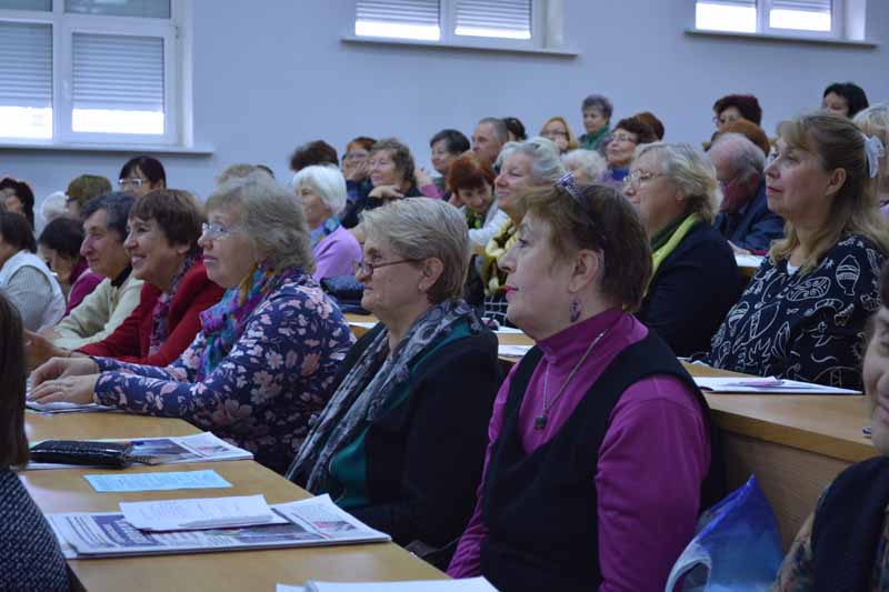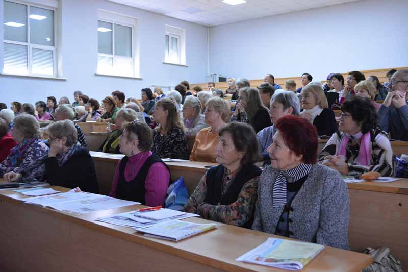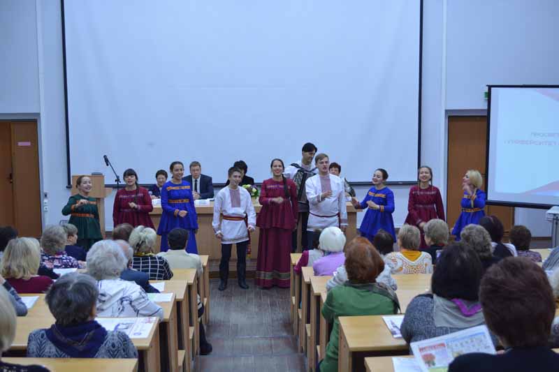 От организаторов перед слушателями Университета старшего поколения выступили руководитель проекта «Просветительский центр «Университет старшего поколения»», к.и.н., доцент Ольга Фомина и менеджер Просветительского центра «Университет старшего поколения», к.пед.н., доцент Людмила Соколова.