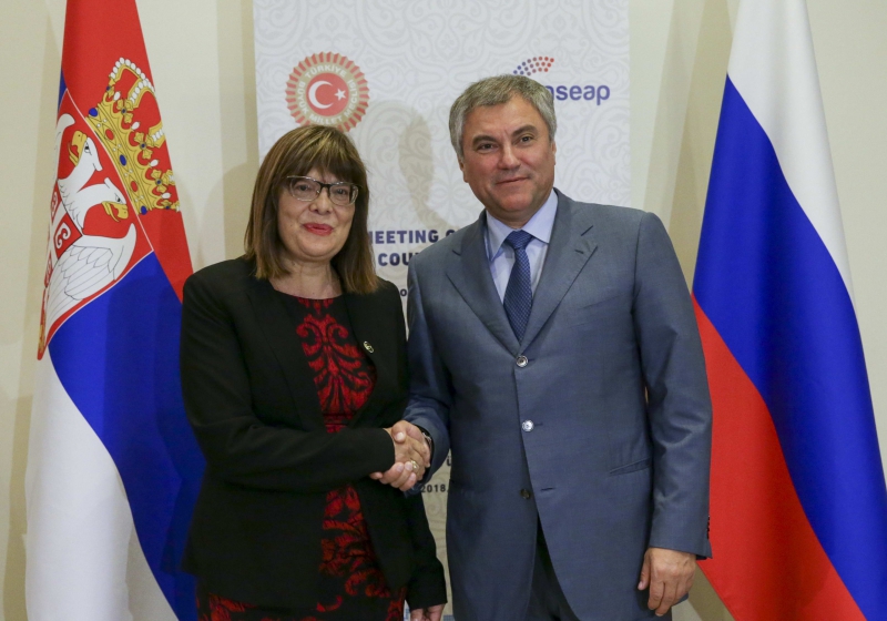 Вячеслав Володин отметил, что контакты по парламентской линии между Россией и Сербией способствуют развитию политического диалога двух стран. Он напомнил, что 21–23 октября этого года запланирован визит Майи Гойкович в Москву для участия в третьем заседании Комиссии по сотрудничеству между Государственной Думой и Народной скупщиной Республики Сербия. Также планируется выступление Майи Гойкович на пленарном заседании Государственной Думы.