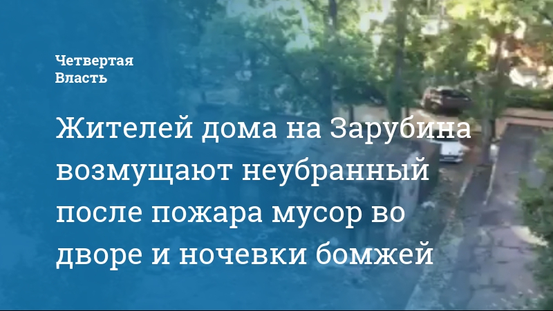 Жителей дома на Зарубина возмущают неубранный после пожара мусор во дворе и ночевки бомжей