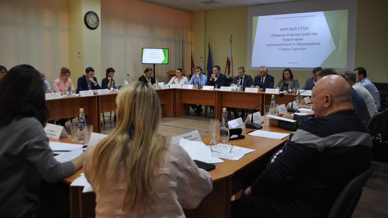 10 октября на площадке Торгово-промышленной палаты Саратовской области состоялось заседание круглого стола, посвященного рассмотрению проекта «Правила благоустройства территории муниципального образования «Город Саратов» в части средств наружной информации: вывески, флаговые композиции, маркизы, стрелки.