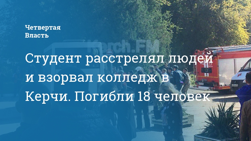 Стали известны подробности ЧП в Керчи. 18-летний студент политехнического колледжа, где произошел взрыв, по имени Владислав Росляков с ружьем и взрывчаткой вошел в здание. Он расстреливал всех, кто ему попадался на пути, а затем, когда кончились патроны, привел в действие взрывное устройство, после чего покончил с собой. Федеральные СМИ сообщают о 18 погибших и около 50 раненых, большая часть из них подростки.