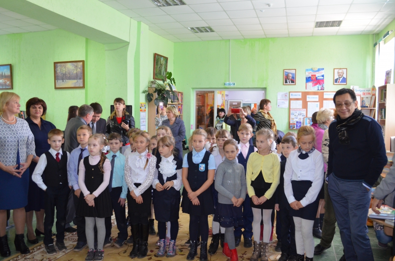 Почетное право открыть именную доску предоставили Егору Кончаловскому и активным юным читателям Арине Гугниной и Денису Пиянзину.