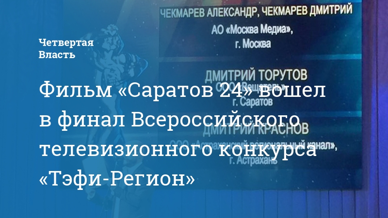 Фильм «Саратов 24» вошел в финал Всероссийского телевизионного конкурса «Тэфи-Регион»