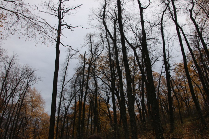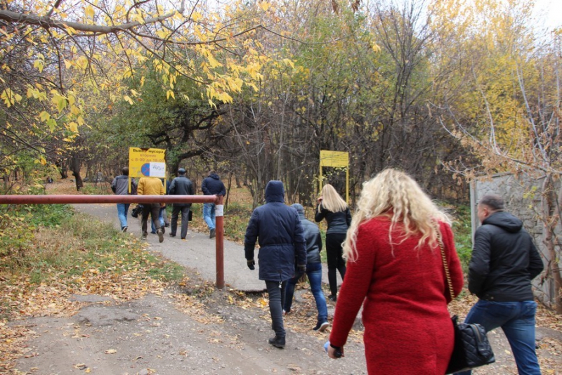 Участники рейда прошли по одной из троп Кумысной поляны, неподалеку от Лыжной базы СГУ. При виде пней Сергей Шаров просил представителей природного парка объяснять, почему то или иное дерево было спилено. Те во всех случаях утверждали, что сруб производился исключительно по необходимости: спиливаются, в основном, гнилые деревья, которые расположены вдоль тропинок и лыжных трасс.