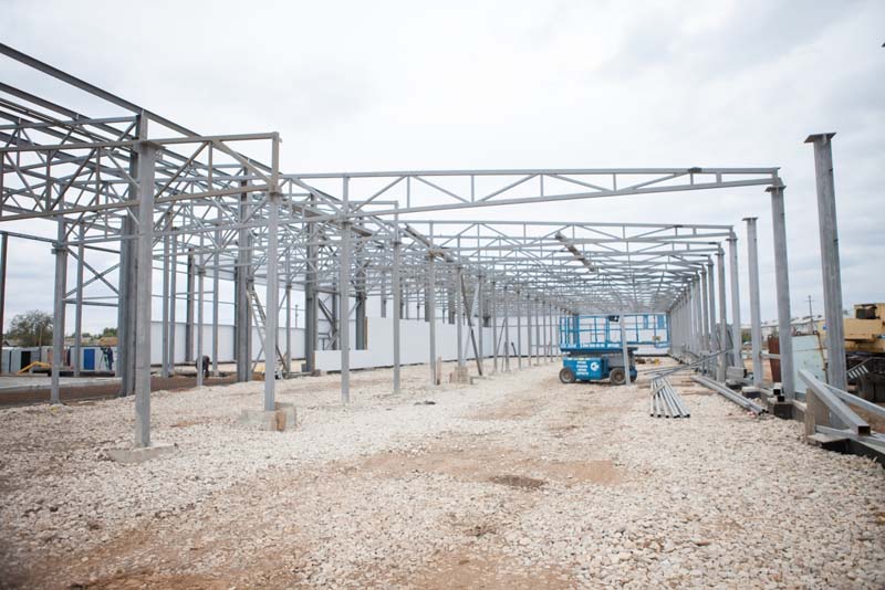 В настоящее время подрядчиком завершено устройство монолитных фундаментов, проведены работы по строительству инженерных коммуникаций, завершается монтаж металлических конструкций, стен и перегородок. Параллельно со строительством проводятся работы по благоустройству прилегающей к спорткомплексу территории.