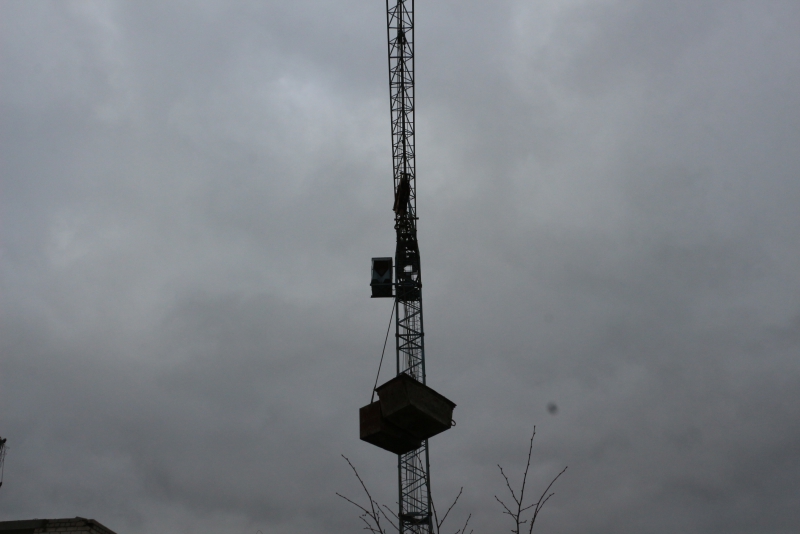Во время общения Вячеслав Володин заметил, что стрела башенного крана начала поворачиваться с грузом в сторону журналистов.