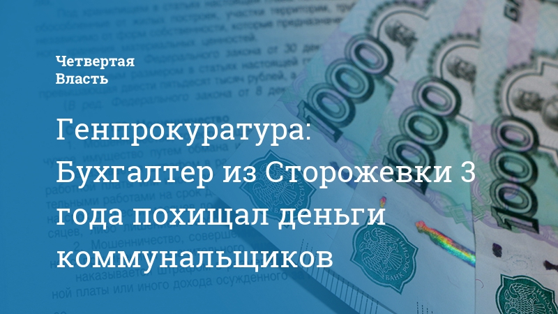 Генпрокуратура: Бухгалтер из Сторожевки 3 года похищал деньги коммунальщиков