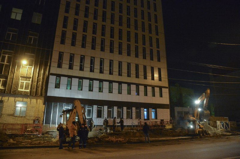 Затем Радаев осмотрел строящееся здание госархива на улице Кутякова. На объекте в ночное время ведутся работы по планировке и благоустройству территории. По словам подрядчика, в ближайшее время в здании завершат монтаж вентиляции, запустят отопление. В конце ноября планируется сдать лицевую часть здания.