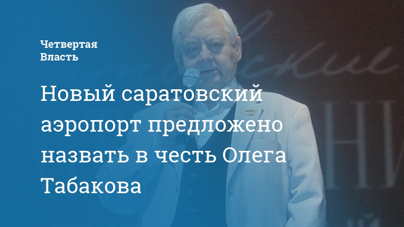 Строящийся в Сабуровке саратовский аэропорт предложено назвать именем известного уроженца нашего региона, народного артиста СССР Олега Табакова. С такой идеей выступил актер, художественный руководитель Московского театра-студии «Табакерка» Владимир Машков.