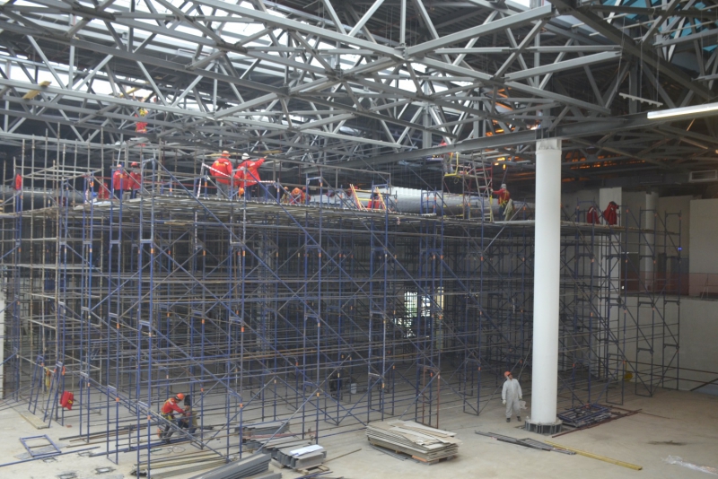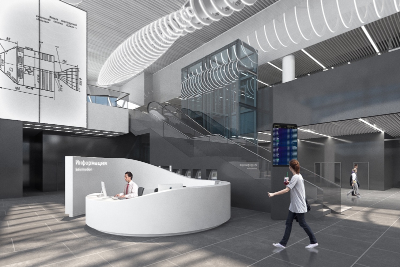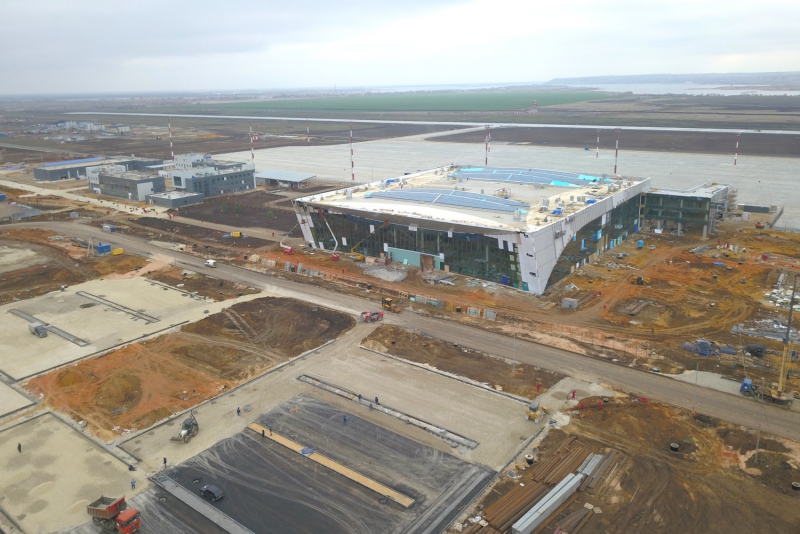 В пассажирском терминале ведется монтаж инженерных систем и установка оборудования, включая девять лифтов и шесть эскалаторов, системы кондиционирования, отопления и вентиляции, прокладываются сети внутреннего электроснабжения, водоснабжения и аварийного пожаротушения. Общая готовность терминала достигла 70%.