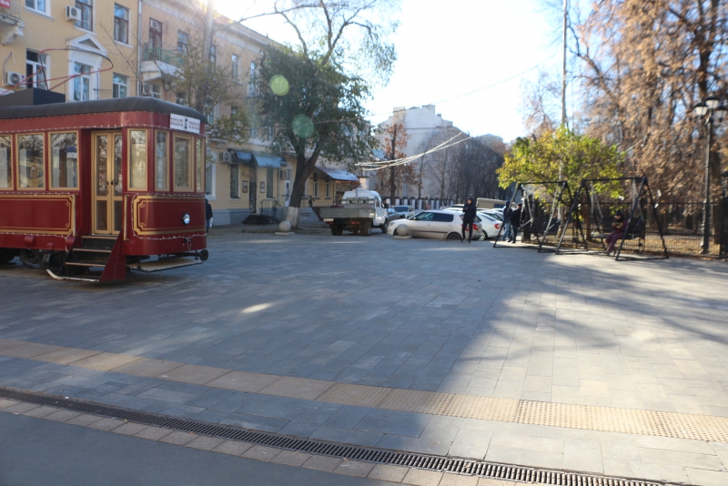Стоит отметить, что до этого пешеходную зону на улице Волжской, кроме деревьев и фонарей, украшали только бетонные шары, которые пришлось укреплять из-за вандалов, скамейки, а также ретро-трамвай «Семен».