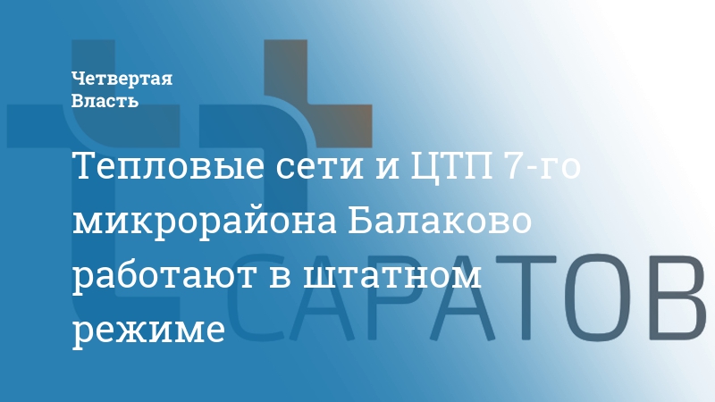 Территориальное управление по теплоснабжению в Балакове включило в работу центральные тепловые пункты № 70, 71, 72 и 73 в 7-м микрорайоне города. Штатный режим теплоснабжения восстановлен.