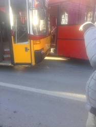На 1-й Дачной столкнувшиеся автобусы перекрыли движение
