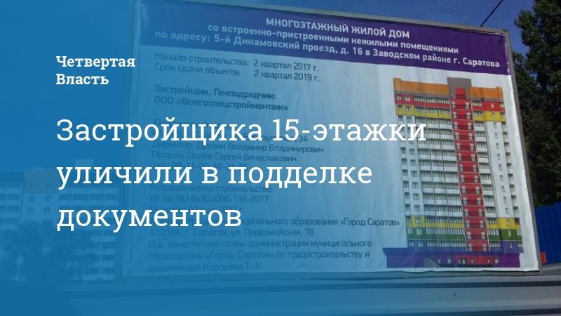 В Заводском районе Саратова возбуждено уголовное дело по факту подделки документов при строительстве 15-этажного дома №16 по 5-му Динамовскому проезду. Об этом сегодня заявили в Генеральной прокуратуре РФ.