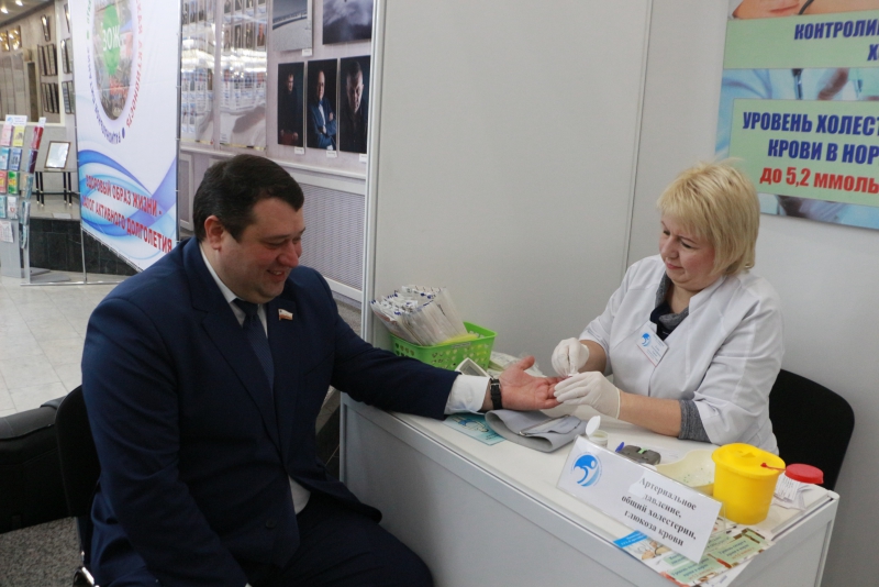 В фойе думы работало несколько врачей со спецоборудованием. Депутатам предлагали сдать кровь на уровень холестерина и глюкозы, проверить артериальное давление, уровень угарного газа в легких, состояние сердца, глазного давления.