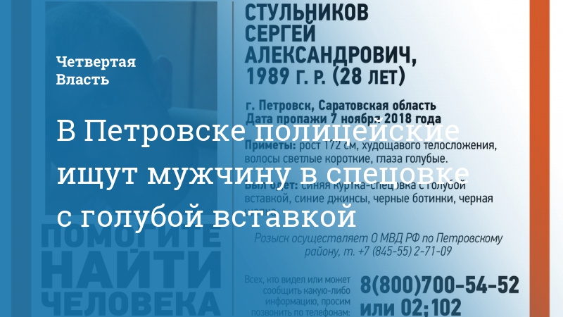 Всех, кто видел или может сообщить какую-либо информацию, просят позвонить по телефонам: 8 (845-55) 2-71-09 – отдел МВД РФ по Петровском району, а также 8 (800) 700-54-52 или 02, 102.