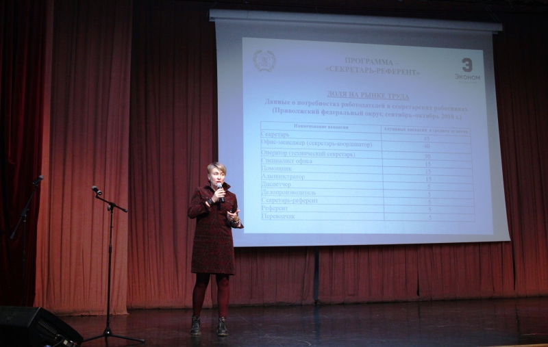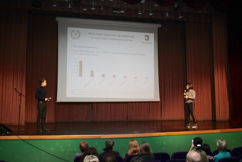 Первое отделение было посвящено презентациям программ: «Эффективные технологии продаж», «Продавец-консультант», «SEO (поисковое) продвижение», «Маркетинг в социальных сетях (SMM)», «Секретарь-референт», «Гувернер», «Экскурсовод», «Event-менеджмент».