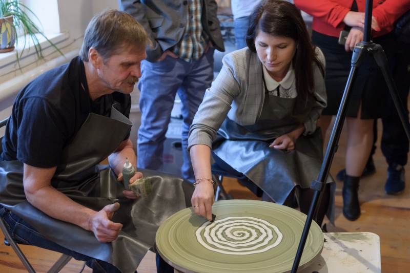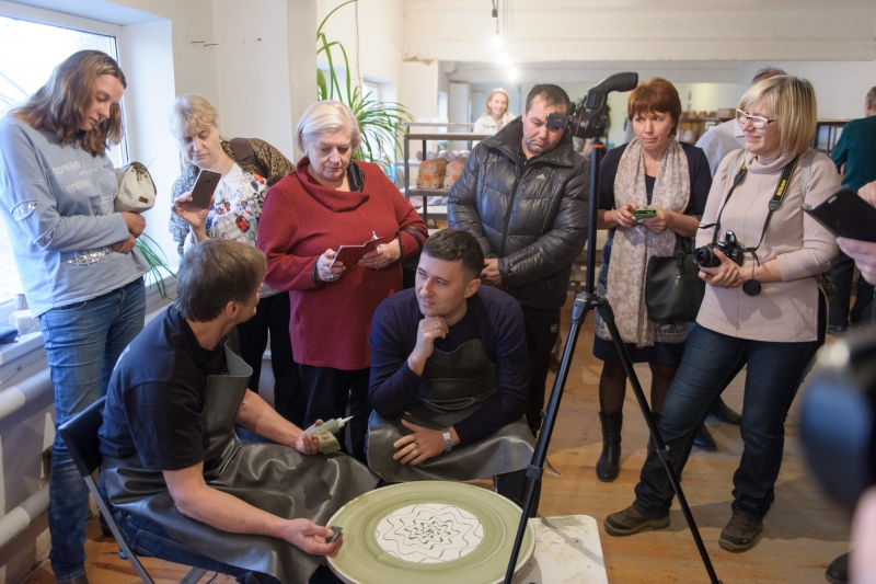 Конференция продолжилась экскурсией на производство «Керамика Золотое», которую провели владельцы предприятия Спартак и Константин Игнатовы. А также мастер-классом по гончарному ремеслу, который прошел под руководством известного саратовского керамиста Михаила Садовникова. Все желающие смогли попробовать его знаменитый «Танец на круге» - рисование на вращающемся гончарном станке. Полученные изображения, по словам автора техники, отражают состояние души рисовальщика.