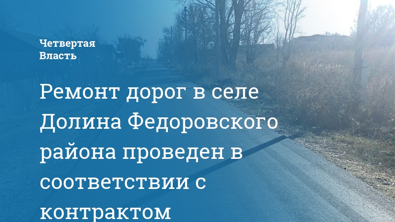 Ремонт дорог в селе Долина Федоровского района проведен в соответствии с контрактом